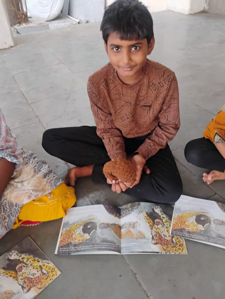 Vasudha has been foccusing on the story books written and published by the Kalpavriksh Environment Action Group as study tools to teach the children English while at the same time introducing to them topics of Nature education. Po the Pangolin, written by author Sharmila Deo is all about a pangoli, an animal that not many children are familiar with but which is now on the endangered species list.