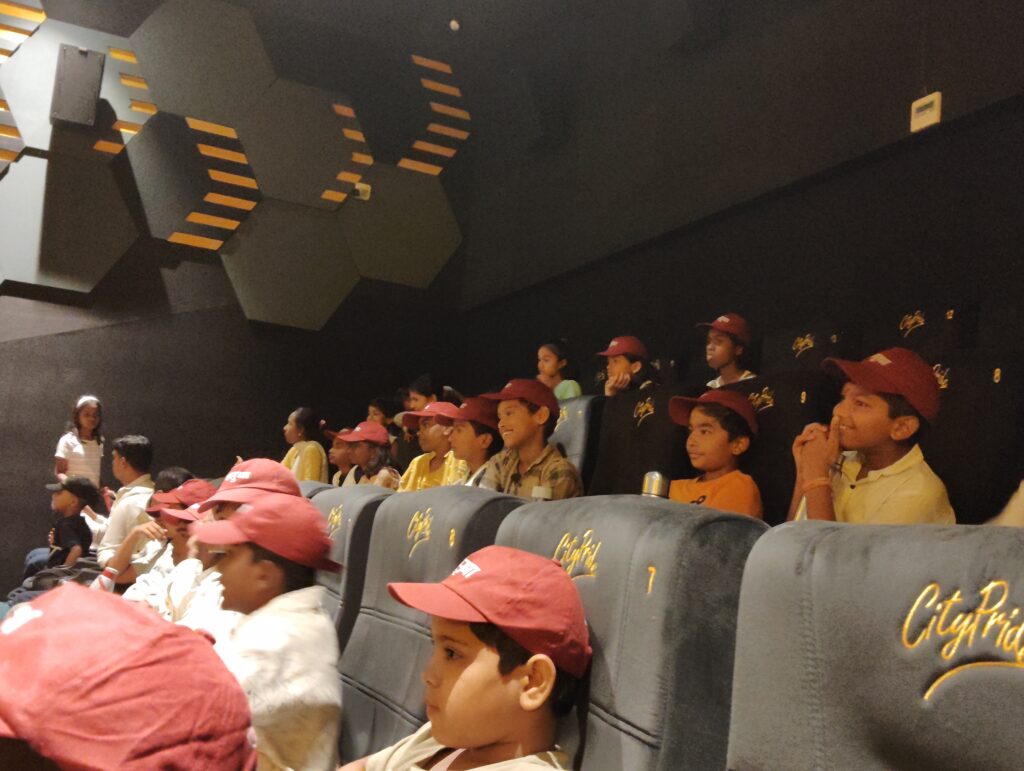 The film Sitaare Zameen Par made by Aamir Khan was a fun way to learn about disability , special needs and develop sensitivity and empathy among the children. The kids laughed and cried during the film screening and later discussed it in class where they reflected on what makes each one of us unique. The team at the City Pride theater welcomed us warmly and offer snakcs and drinks to the kids after the movie.